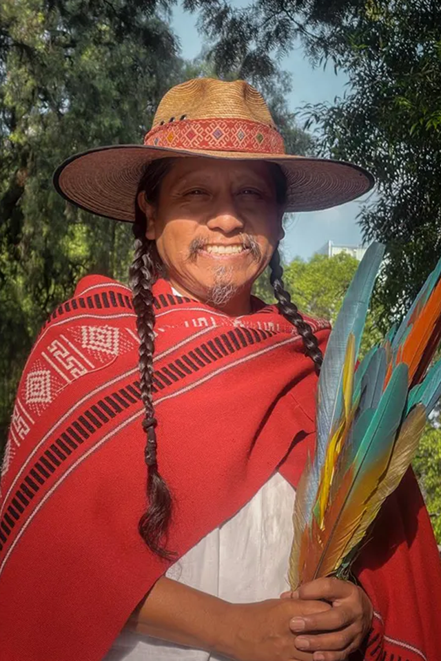 A hereditary spiritual leader with over 30 years of practice, serving as a Guardian of ancestral Mexica traditions and sacred ceremonies.