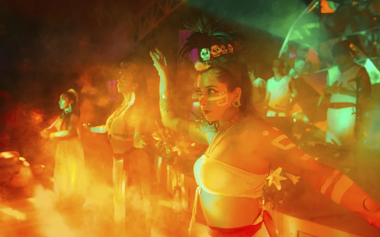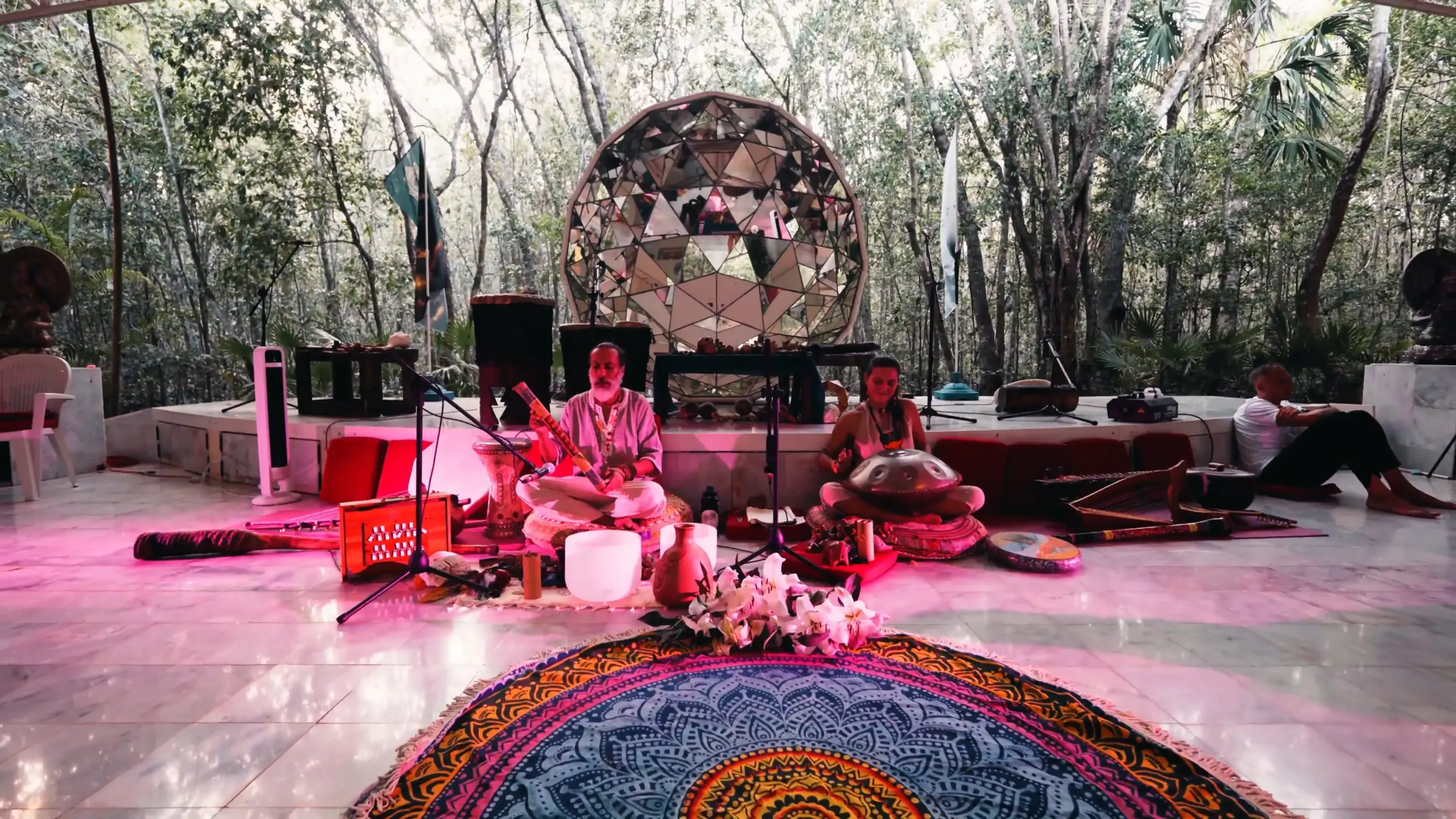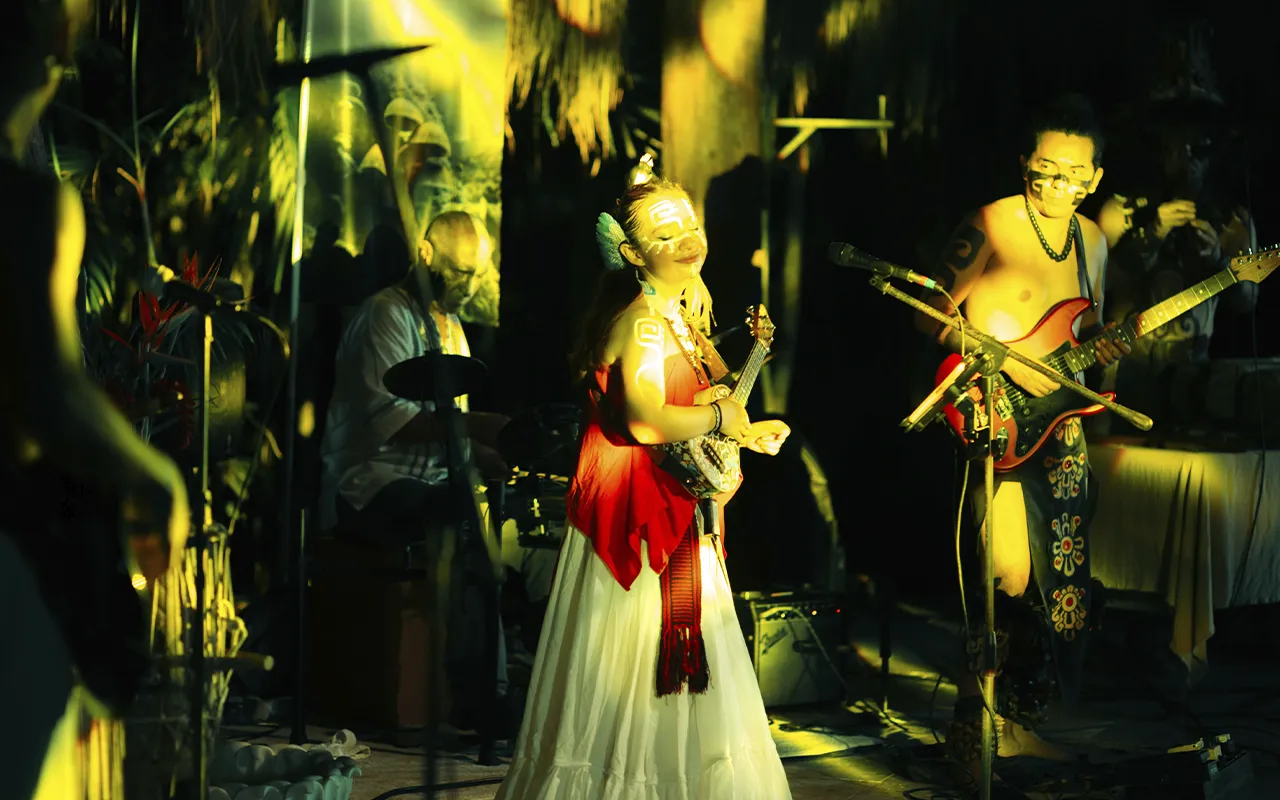 A Mycomysticism Festival is a multi-day group retreat combining sacred psilocybin ceremonies, wellness practices, live music, and community, held at a private resort in Mexico.